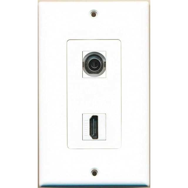 RiteAV 1 3.5mm Audio / Headphone Jack and 1 HDMI Port Wall Plate Audio-Headphone Jack Port Wall Plate Fits standard outlet boxes and low voltage mounting brackets. easily clean up installation of audio wires by installing riteav 3.5mm audio female/female plates. wall plate looks the same on the front and back (female to female). Audio-Headphone Jack Port Wall Plate.