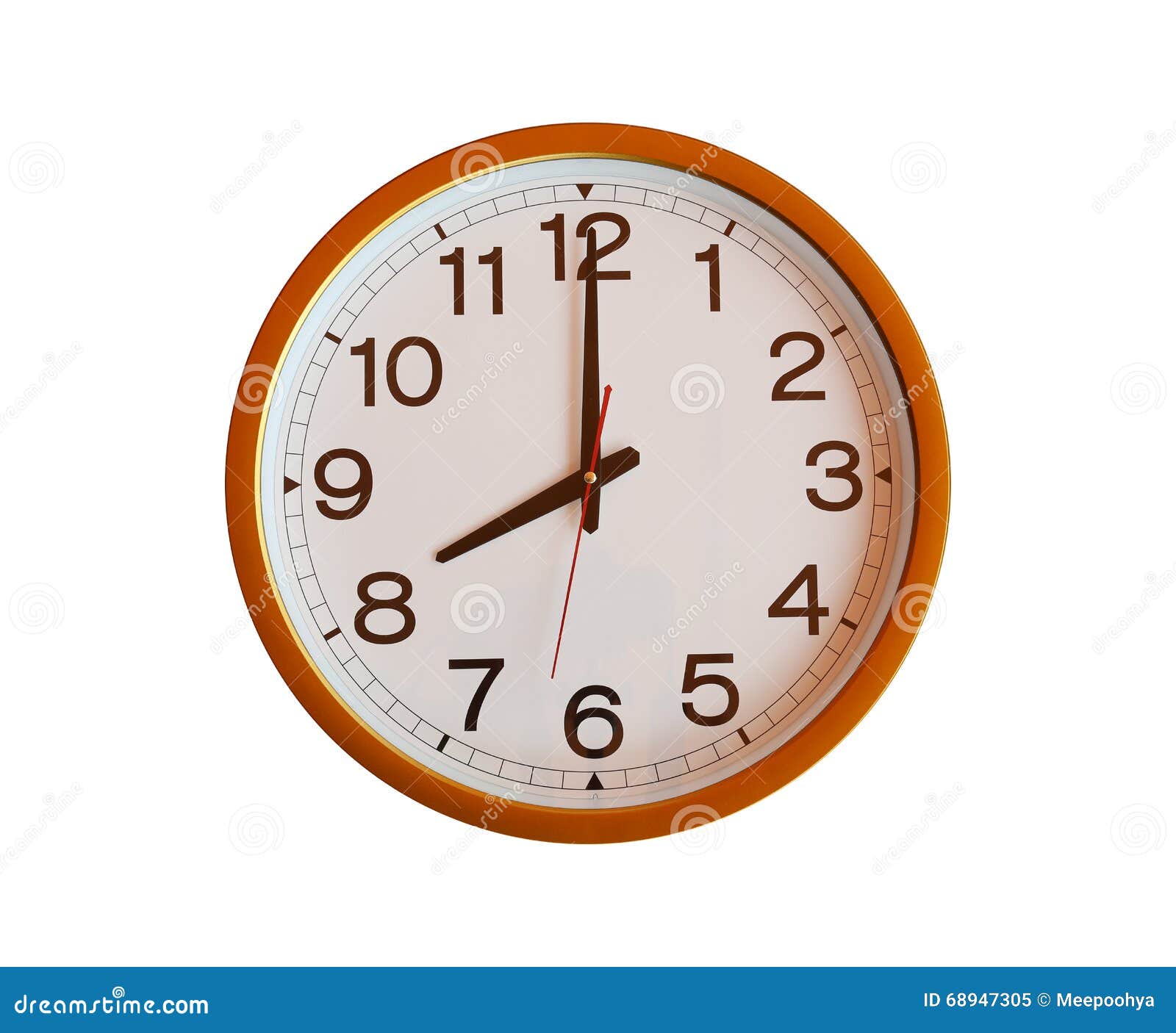 Orange Wall Clock Isolated in Eight O Clock. Stock Image Image of