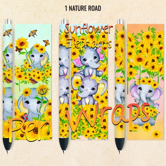 Sunflower Elephant Pen Wraps Inkjoy Wraps Printable Digital Etsy UK