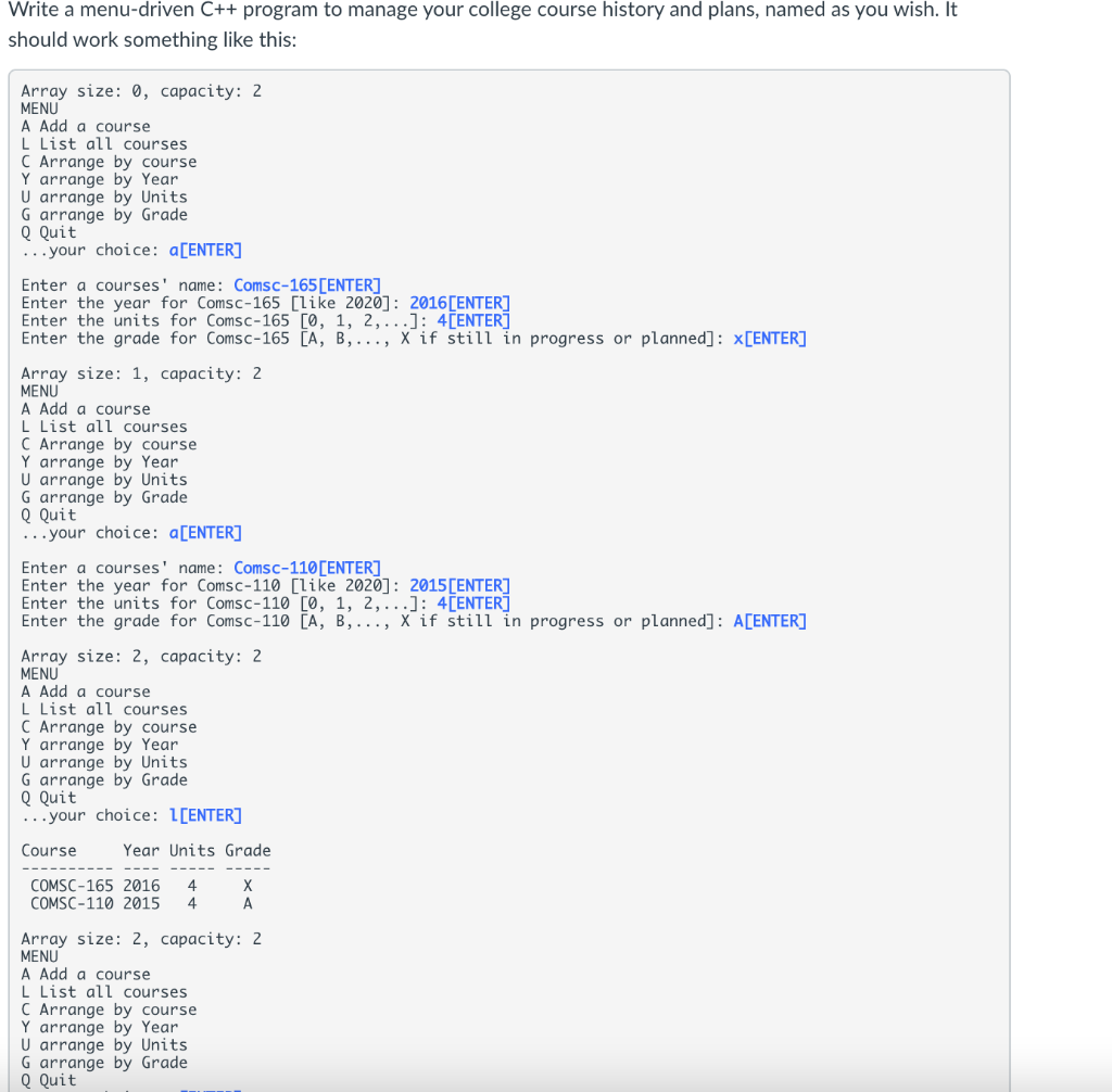 Solved Write a menudriven C++ program to track your Menu Driven Program In C Examples Simple c program to show how to create a menu driven program using switch case in c language with complete explanation. A menu driven program is a program that represents a. I'm trying to write a program with choice menu using the switch statement in c. Execute a specific set of statements according to the user's choice. To create the. Menu Driven Program In C Examples.