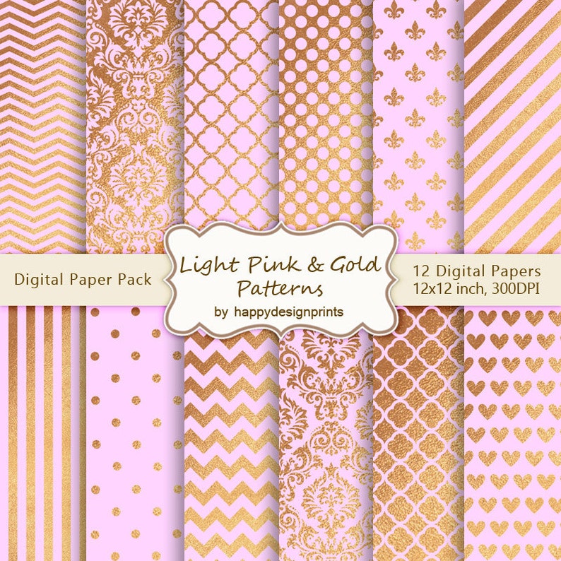 Light Pink & Gold Foil Patterns Texture Digital Paper Pack Etsy