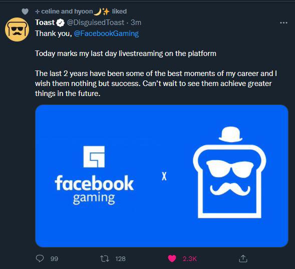 Disguised Toast quitte Twitch pour Facebook Gaming Dexerto.fr Toast Facebook Gaming Popular streamer disguised toast announced he has left facebook gaming after streaming on the platform for the past two years. Disguised toast, a popular streamer, reveals he wishes he was on twitch when among us was at its peak. He says he missed out on many viewers and opportunities due to his exclusive deal with facebook gaming. This thread was. Toast Facebook Gaming.