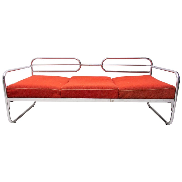 Chromed Bauhaus Sofa, Attribute to Slezák Company, Czechoslovakia, 1930s For Sale at 1stDibs