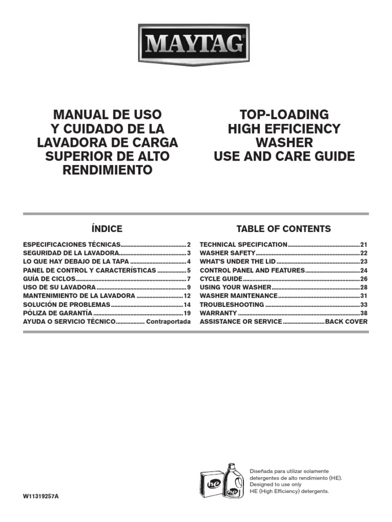Manual de Lavadora MAYTAG PDF Lavadora Agua