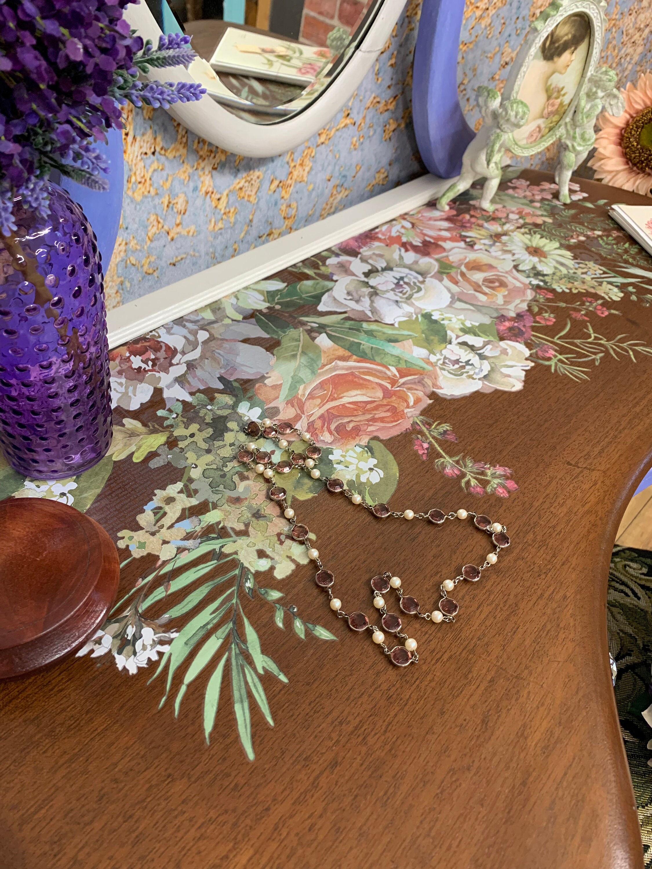 Makeup Vanity Table for Her Hand Painted Blue and White,antique With