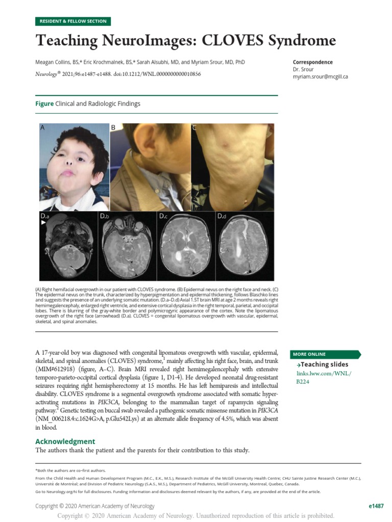 Teaching NeuroImages CLOVES Syndrome Neurology Cloves Syndrome Wiki Cloves syndrome belongs to the spectrum of overgrowth syndromes with complex vascular anomalies caused by mosaic. Cloves syndrome is the most common overgrowth syndrome associated with a pik3ca variant, also known as pros (for pik3ca. Cloves syndrome is a rare, progressivecongenital disorder that involves multiple organs including the skin, the vascular system, and the musculoskeletal system [1]. Cloves syndrome is. Cloves Syndrome Wiki.