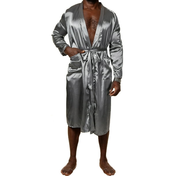 Mens Smooth Lounge Robe, Long Lightweight Sleepwear Sleepwear