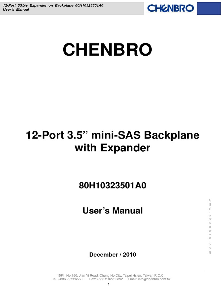 CHENBRO. 12Port 3.5 MiniSas Backplane With Expander 80H A0. User S