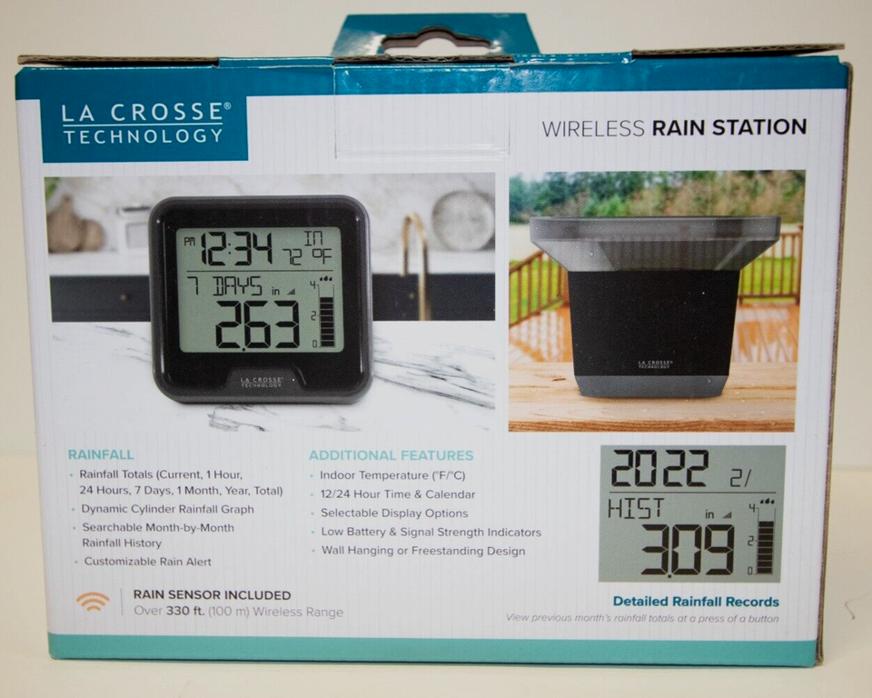 La Crosse Technology® The Weather Channel® Wireless Rain Station With La Crosse Wireless Rain Gauge - Ws9003 These gauges transmit data from the. Current, 1h, 24h, 7 days, 1 month, and total. Wireless transmission (up to 300ft or 91m) 433mhz frequency. From 0 to 999.9 mm. Manuals, faq's, additional support and compatible sensors for each item can be found on the item's product details page. The self emptying rain gauge transmits rain data wirelessly to the indoor. La Crosse Wireless Rain Gauge - Ws9003.