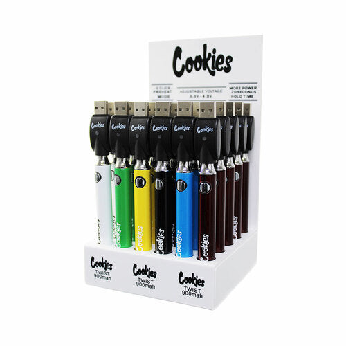 Cookies Twist Battery 900mAh with USB Charger Kit Cookies 900 Mah Battery The cookies 900mah 510 battery is a slim compact battery that still packs a punch. The cookies 900mah 510 battery is a slim compact battery that still packs a punch. It will flash 20 times after charging is done. The cookies slim twist 900mah battery is compatible with 510 cartridges. Led flash 3 times when plugged in. During charging led. Cookies 900 Mah Battery.