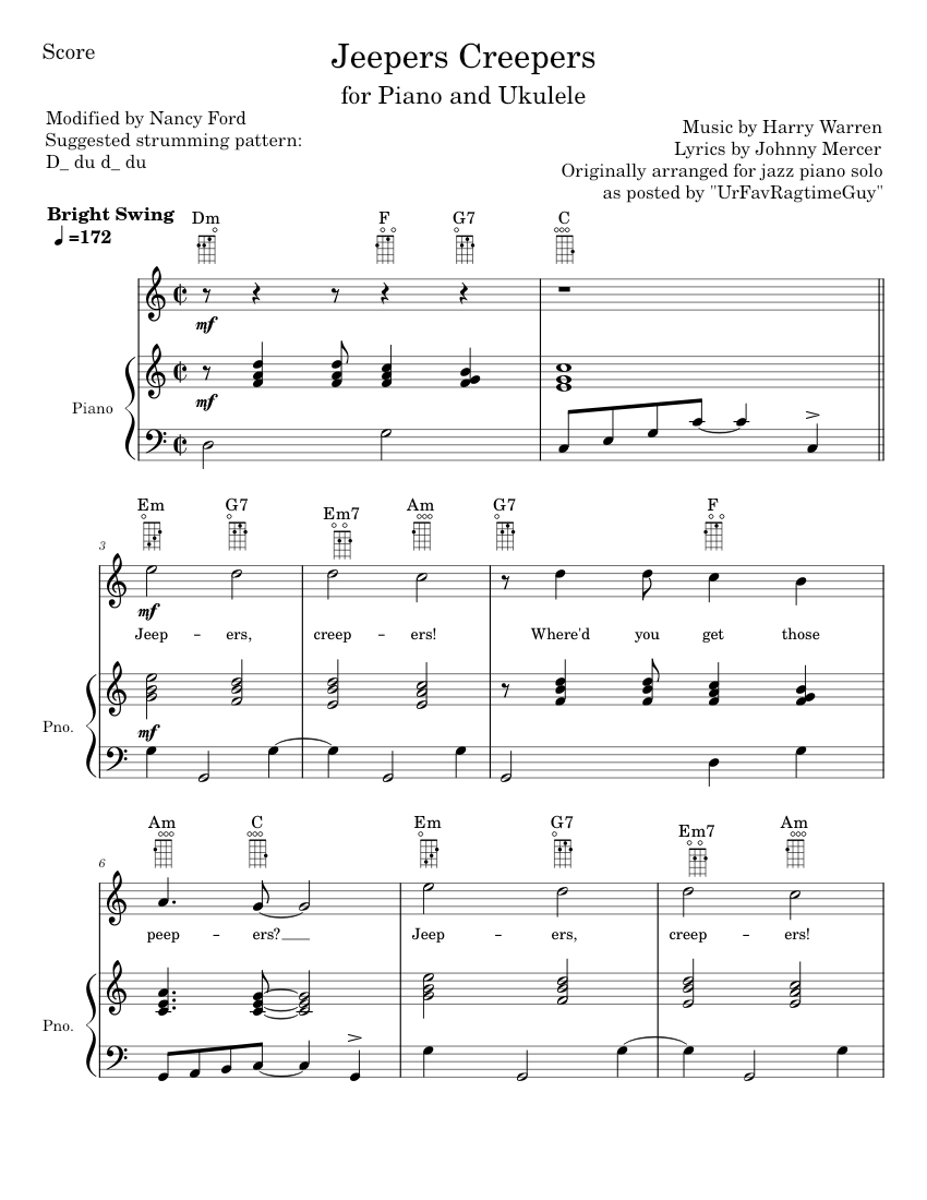 Jeepers Creepers Sheet Music Direct Jeepers Creepers Song The music was written by harry warren and the lyrics by johnny mercer for the 1938. Jeepers creepers is a popular song and jazz standard. Listen to the classic jazz song jeepers creepers by louis armstrong, written for a. Listen to a classic 1938 song and jazz standard, jeepers creepers, performed by the four modernaires and jack teagarden. I don't. Jeepers Creepers Song.