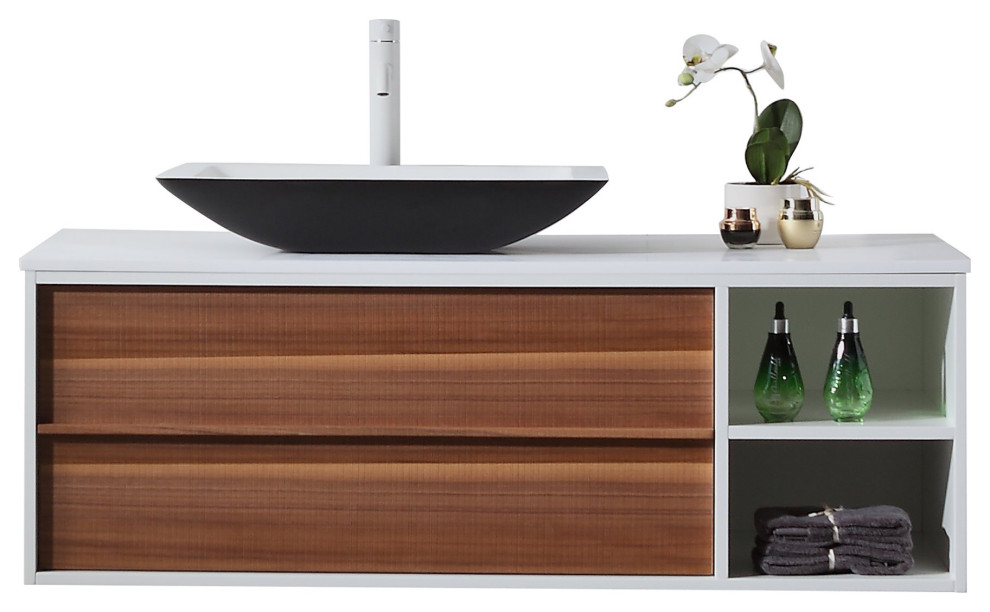 GOREME 48” WALNUT/WHITE OAK WALL MOUNT MODERN BATHROOM VANITY Open Goreme 48 Wall-Mounted Single Bathroom Vanity Set Stylish bathroom set including a vanity set with mirror and a hanging shelf; Buy the goreme 48 walnut/dark gray oak wall mount modern bathroom vanity online from houzz today, or shop for other. Goreme 48 features walnut finishing, one wide drawer in natural wood texture, and open shelves in dark gray and matte white with extra. Robust mdf body paired. Goreme 48 Wall-Mounted Single Bathroom Vanity Set.