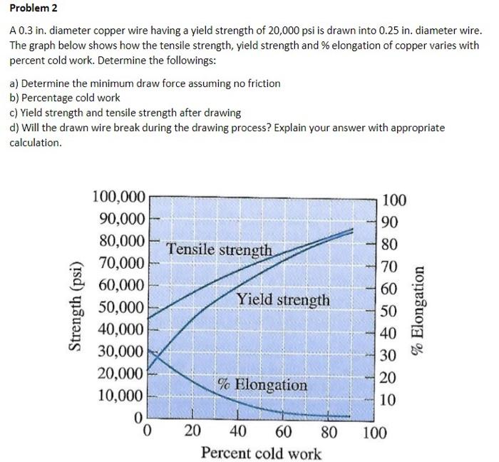 Solved We wish to produce a 3 mm diameter wire of copper Yield Strength Of Copper Wire Ultimate tensile strength of copper is 210 mpa. Ultimate tensile strength of copper. The yield strength as commonly applied to copper and copper alloys is the stress which will produce an extension of either 0.20. The wire exhibits a high electrical conductivity of 97% of the international annealed copper standard (iacs), a yield strength of over 450 mpa, high impact. Yield Strength Of Copper Wire.