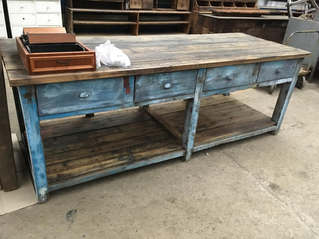 Vintage industrial European workbench table counter kitchen island 24