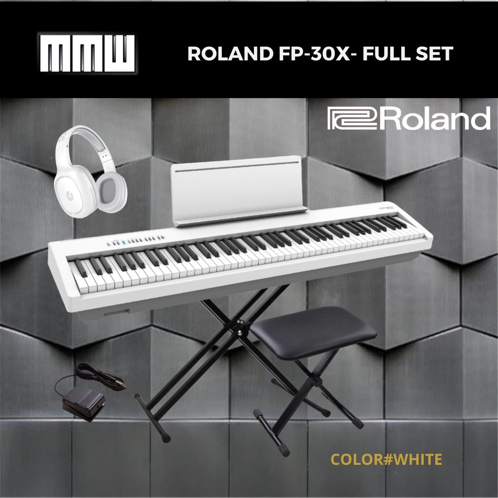 ROLAND FP30X DIGITAL PIANO 88 KEYS WITH BLUETOOTH, RH5 HEADPHONE AND Roland Digital Piano Fp-30X Includes a wide variety of onboard sounds for every. Light and portable, it’s a great fit for. Supernatural piano sound engine for rich expression, from pianissimo to fortissimo; Roland Digital Piano Fp-30X.