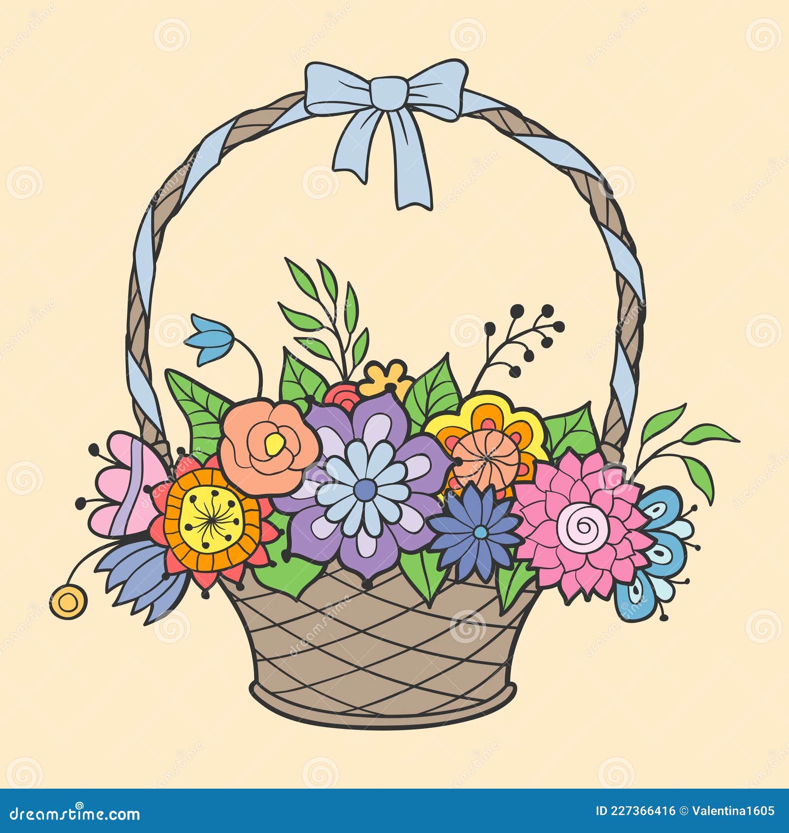 Basket of Flowers. Colored Vector Illustration Stock Vector
