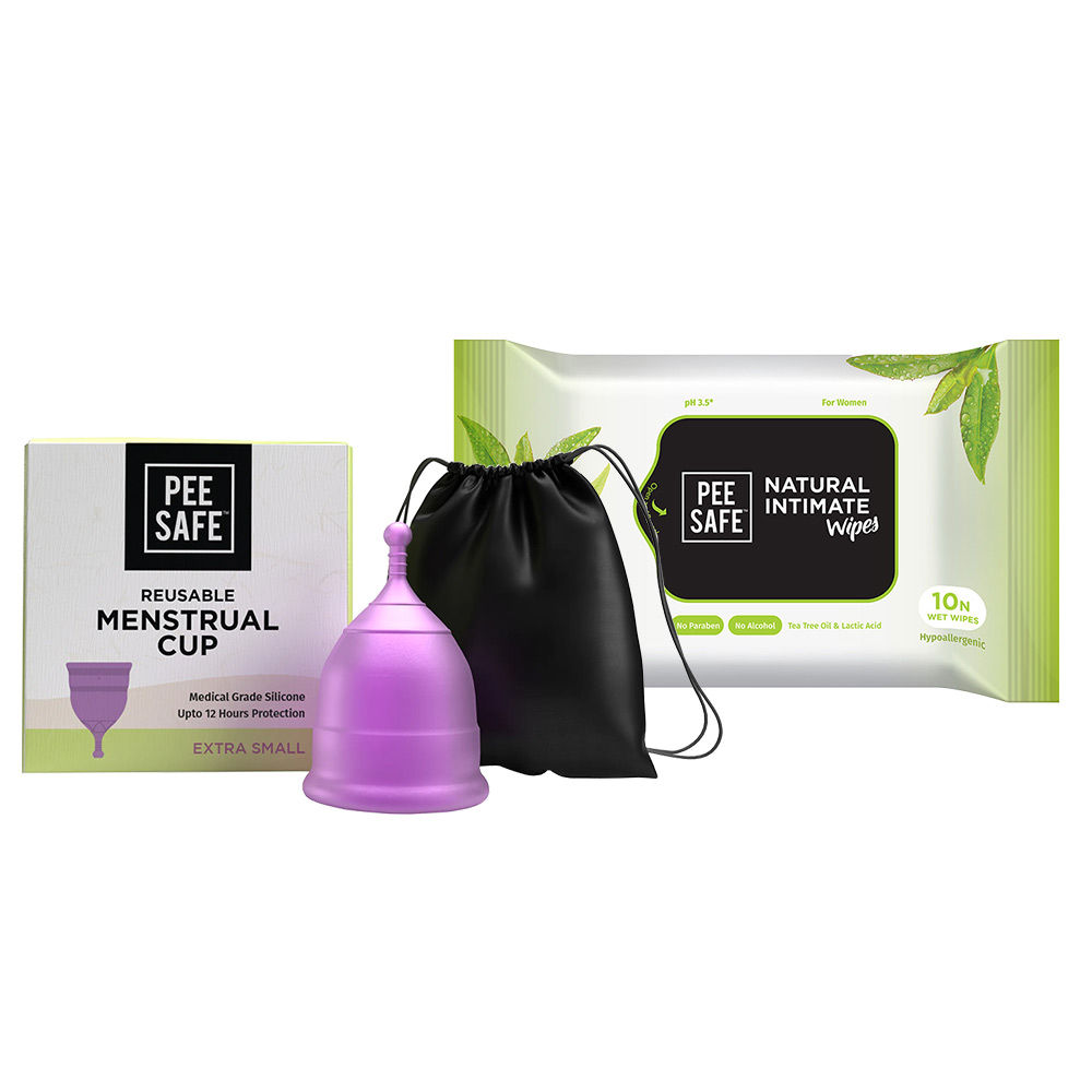 Pee Safe Combo of Menstrual Cup (Extra Small) with Intimate Wipes (Pack
