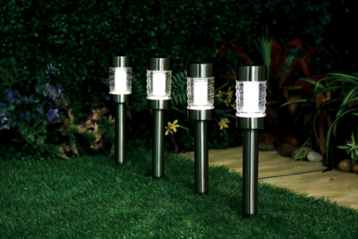 Stainless Steel Solar Lighthouse Stick Lights 4 Pack Outdoor & Garden