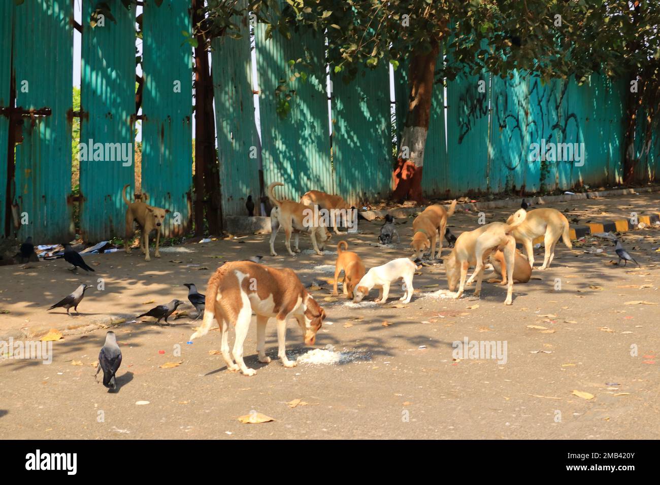 stray dogs eating rice in Mumbai in India Stock Photo Alamy