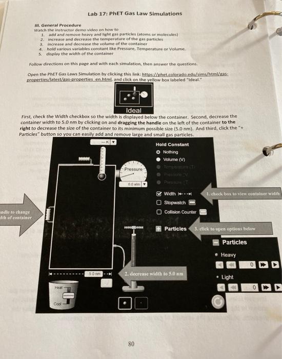 Lab 17 PhET Gas Law Simulations tic Name Section