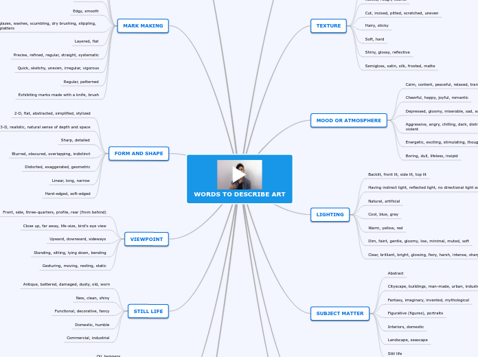 WORDS TO DESCRIBE ART Mind Map