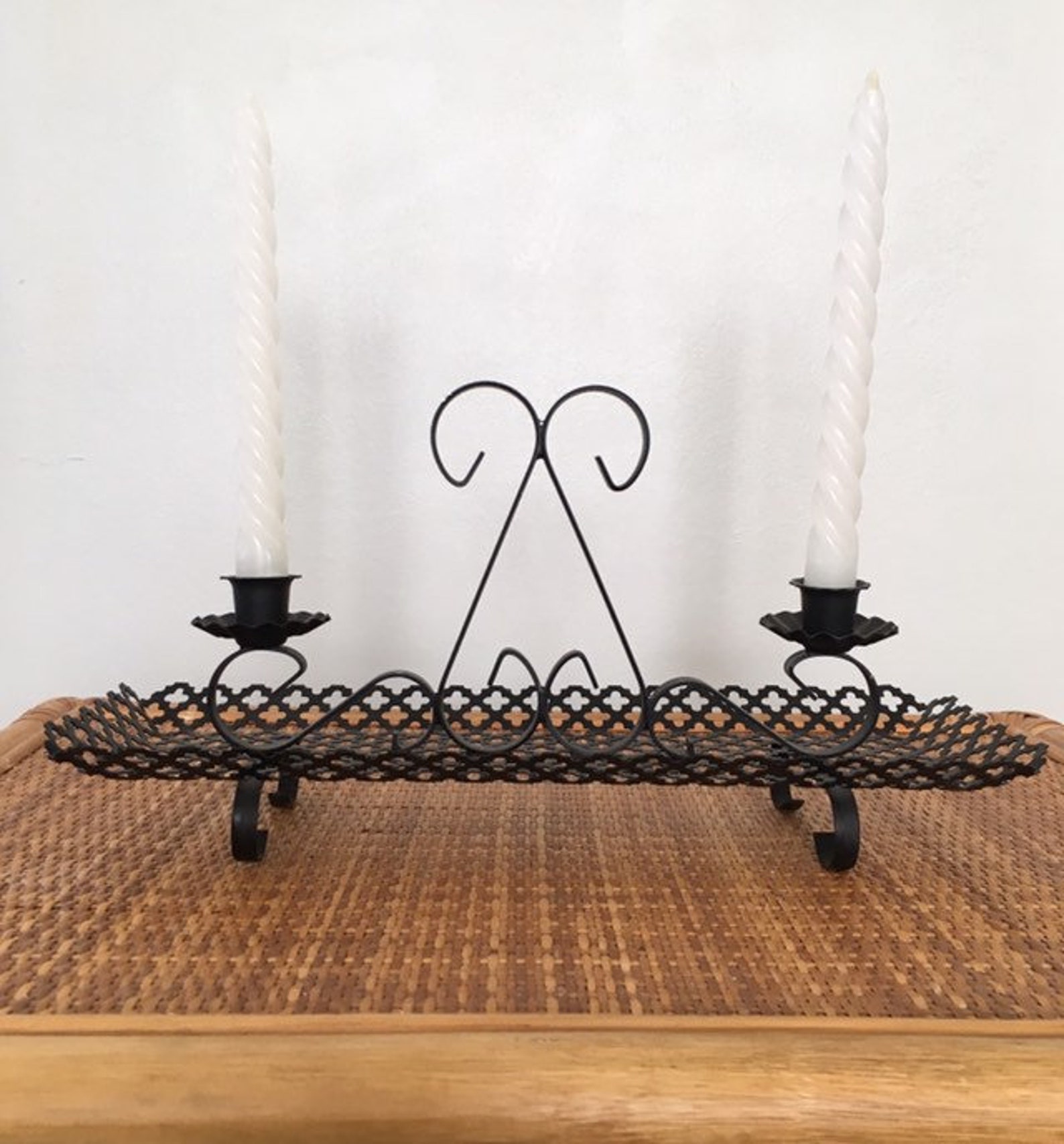 Mid Century Gothic Quatrefoil Candle Holder by kibster on Etsy Quatrefoil Metal Candle Holder There is a glass insert to hold a small candle. Vintage black metal candle holder with a stamped quatrefoil pattern and hairpin legs. Created with a beautiful play of a quatrefoil design that holds small glass. Their antique look and gold brushed metal frames look stunning as. Step up a style element in your home with this wall candle holder.. Quatrefoil Metal Candle Holder.