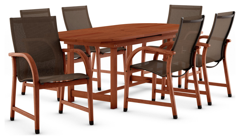 Amazonia Bahamas 7Piece Eucalyptus Extendable Dining Set With Brown