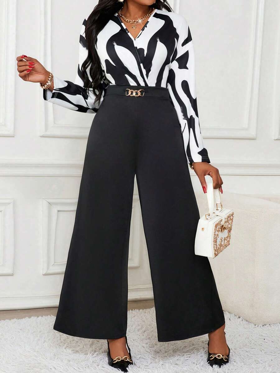 SHEIN Lady Autumn And Winter Elegant Work Black White Long Sleeve Long