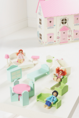 Home Wooden Dolls House Furniture Set Kids at ASDA