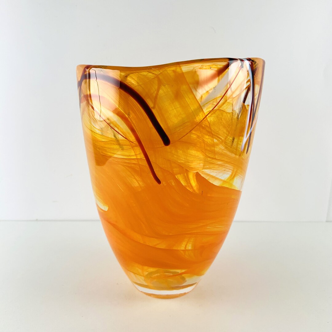 Kosta Boda Glass Art Orange Vase Crystal Glass Kosta Boda Etsy