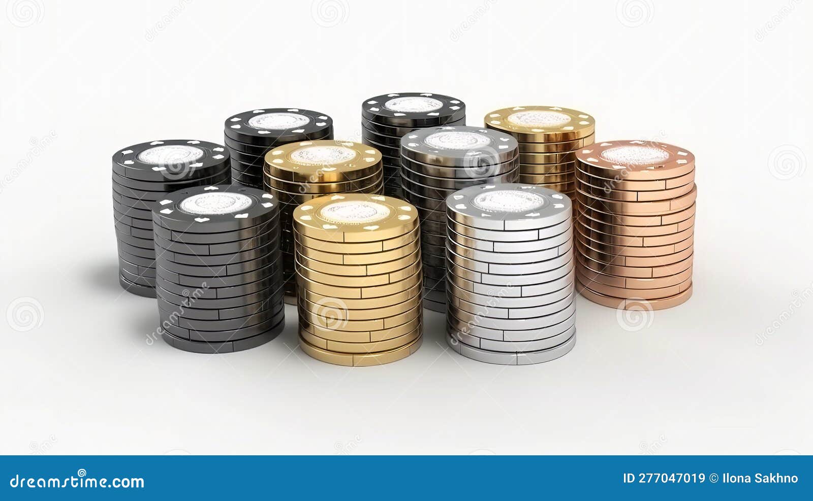A Set of Poker Chips Stack Isolated on White Background. 3D Rendering