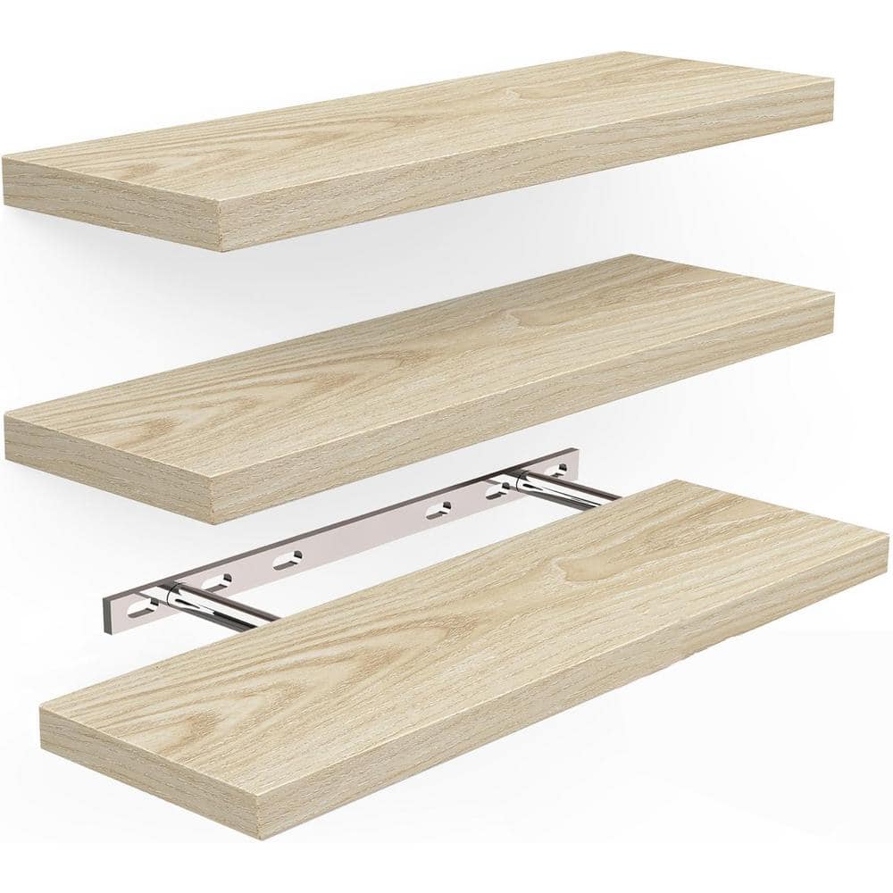 16 in. W x 6.7 in. D Natural Wood Decorative Wall Shelf (Set of 3