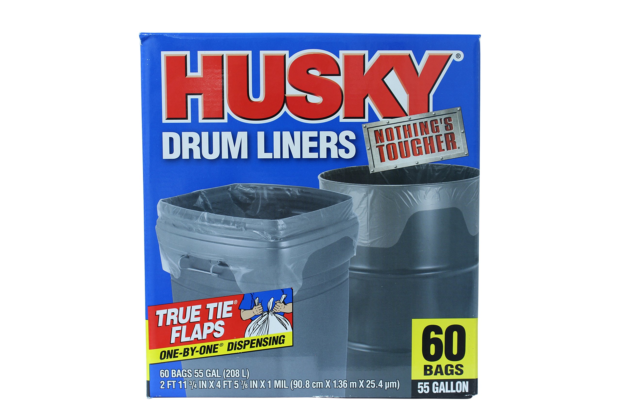 Husky Drum Liners 55 Gal Clear Husky 55 gallon clear flap tie drum liner is the affordable solution to any task requiring a large quantity of quality drum liners. Free delivery on eligible orders of £20 or more. Quickly seal bags and minimize messes, without the need for struggling against a large bag to tie a knot. Holds up to 55 gallons of trash or debris.. Husky Drum Liners 55 Gal Clear.