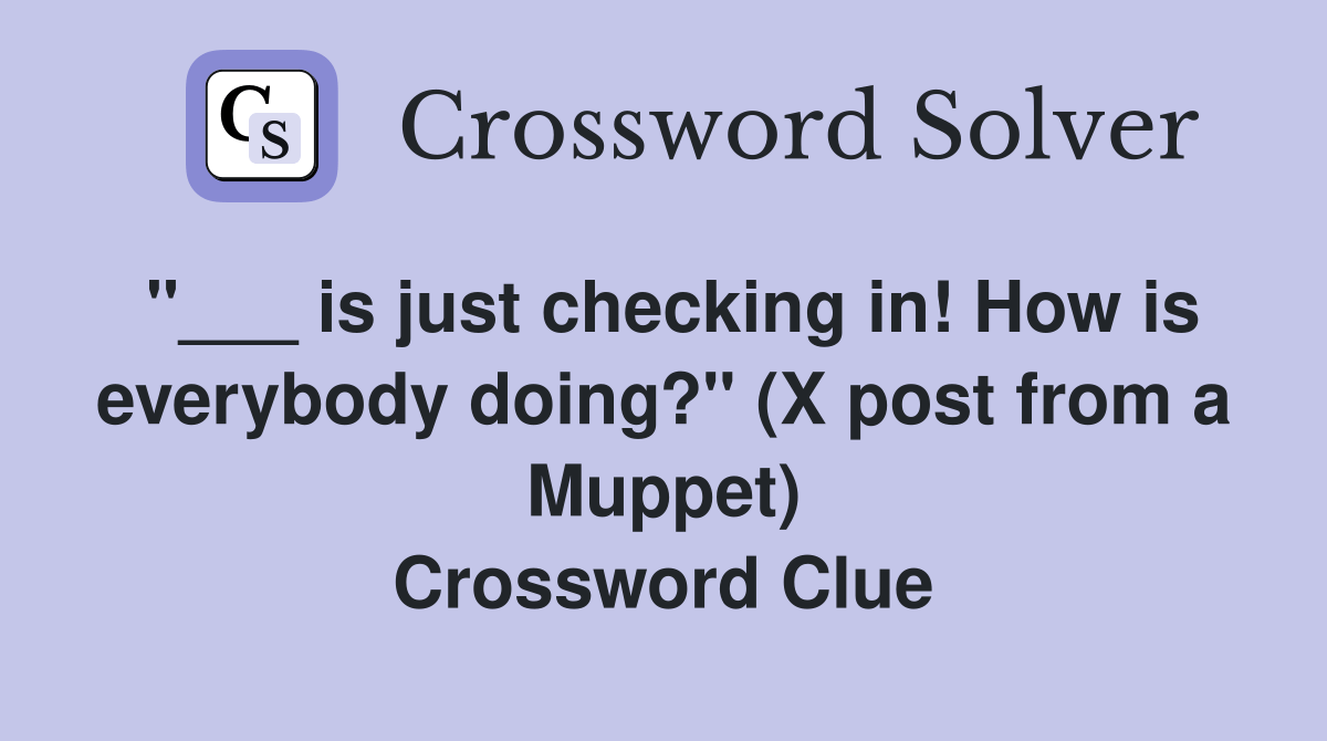 is just checking in! How is everybody doing?" (X post from a Muppet Muppet Drummer Crossword Puzzle Clue A further 2 clues may be related. We have found 40 possible answers for this clue in our. There are related clues (shown below). The crossword solver found 30 answers to muppet drummer 6, 6 letters crossword clue. Here is the answer for the crossword clue muppet drummer last seen in usa today puzzle. We have found 40 possible. Ny. Muppet Drummer Crossword Puzzle Clue.