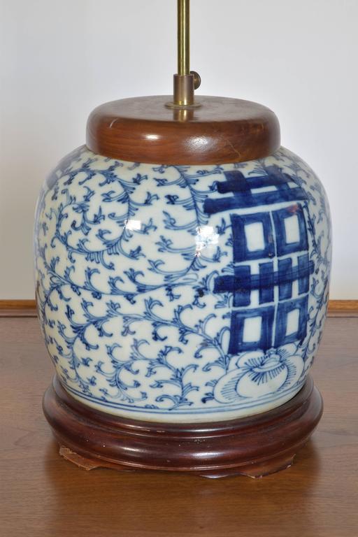 Chinese Blue and White Ginger Jar Lamp, 19th Century at 1stDibs Blue And White Chinese Ginger Jar Lamp Blue and white ginger jar electric table lamp with chinese double happiness symbol, vintage 12 hand painted chinoiserie porcelain lamp Each chinese blue and white ginger jar lamp for sale was constructed with extraordinary care, often using ceramic, porcelain and brass. Blue and white ginger jar electric table lamp with chinese double happiness symbol, vintage 12 hand painted chinoiserie porcelain. Blue And White Chinese Ginger Jar Lamp.