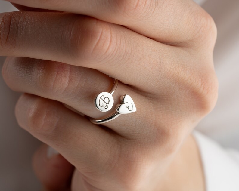 Elegant Adjustable Heartshaped Ring, Personalized Initial Gold Name
