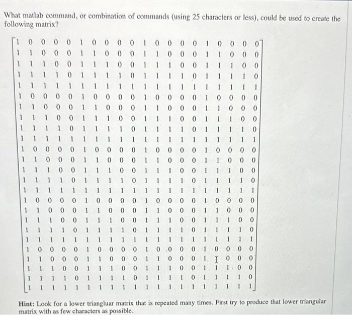 Solved What matlab command, or combination of commands