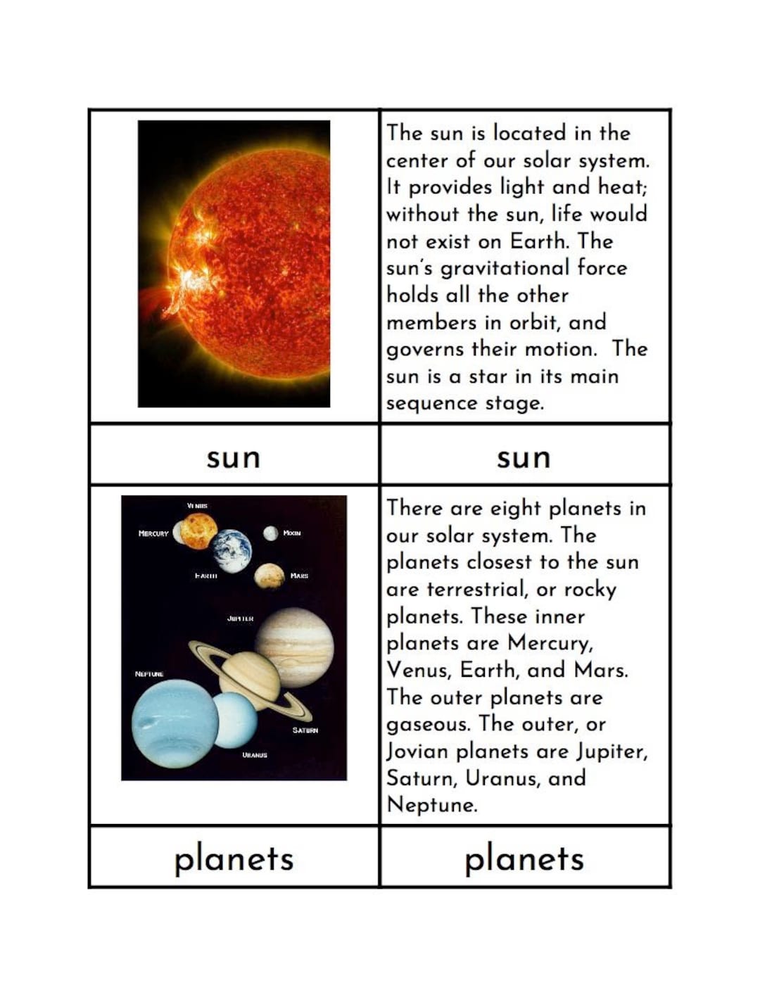 Parts of the Solar System Montessori Three/four Part Cards Etsy