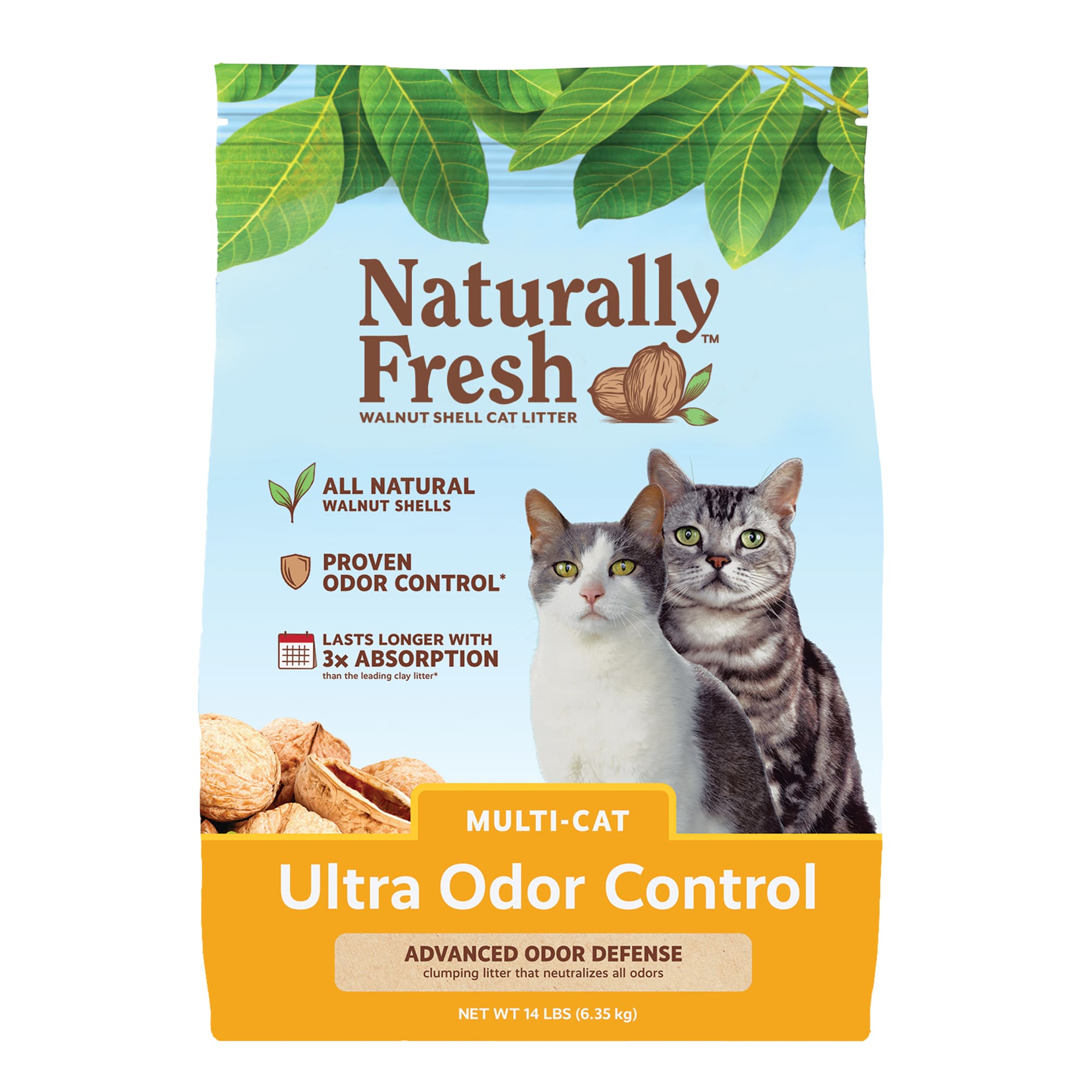 Naturally Fresh Ultra Odor Control QuickClumping Natural MultiCat Walnut Cat Litter, 14 lbs