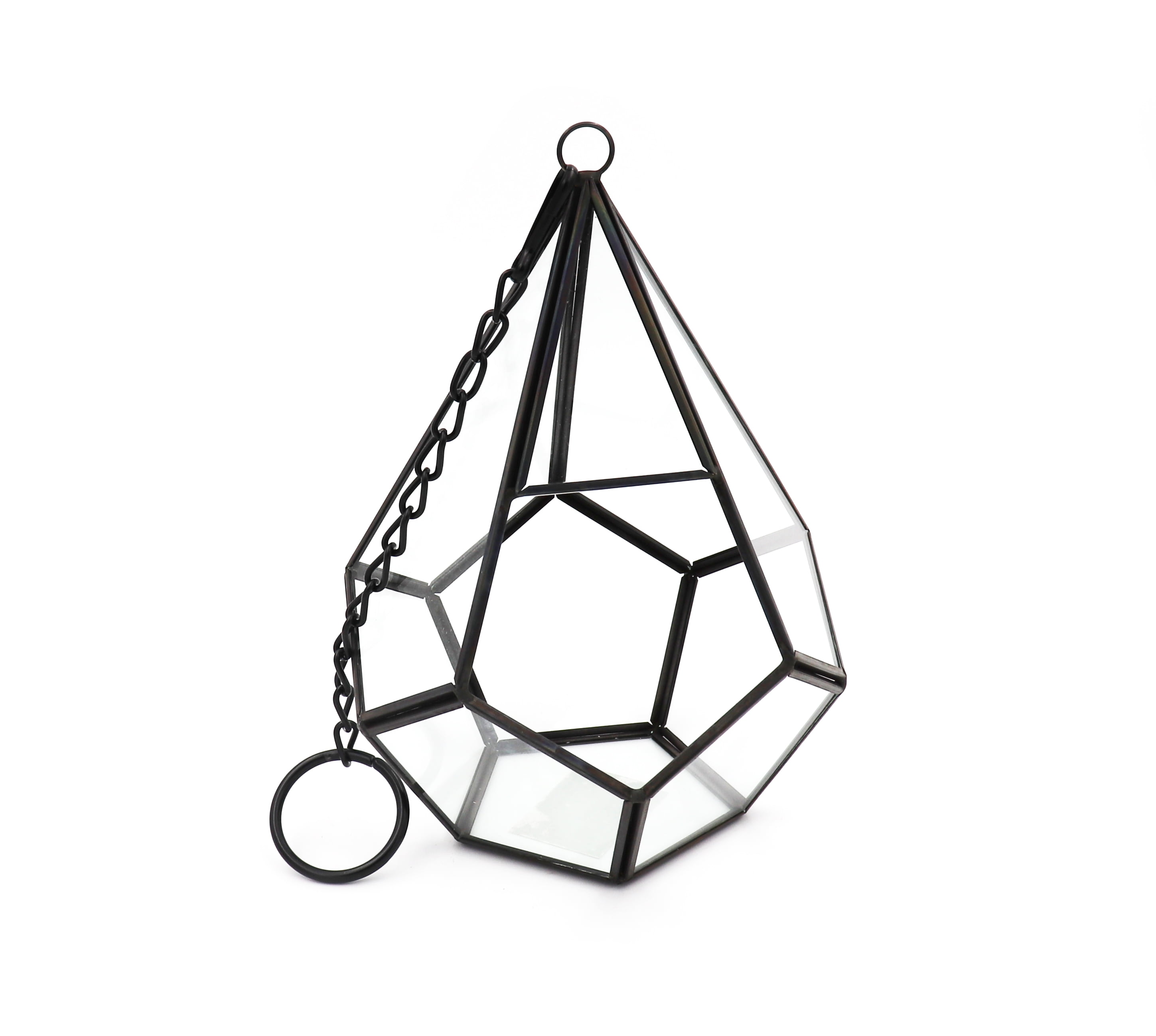 JOICE GIFT Metal Geometric Hanging Teardrop Glass Terrarium Tealight