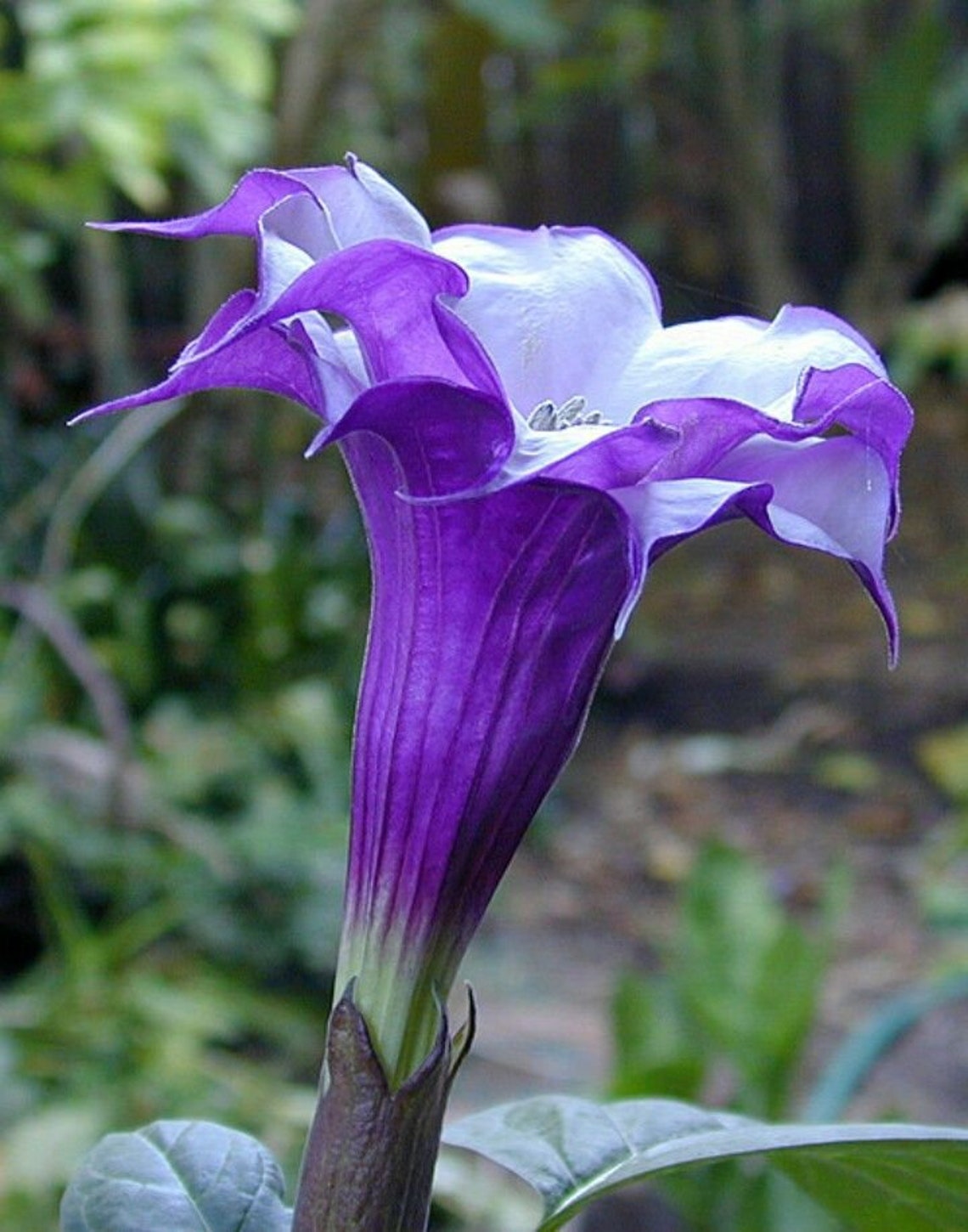 Sydney Australia, trumpet shaped flower of a purple datura plant Trumpet Flowers Purple All parts of the angel’s trumpet plant are toxic. Take care when planting or touching it, and avoid areas where children or pets frequent. — brugmansia is a stunning perennial with vivacious blooms that inspired its common name—angel trumpet—and a summery floral fragrance. Their shape gives the plant its common name, angel's trumpets. Trumpet Flowers Purple.