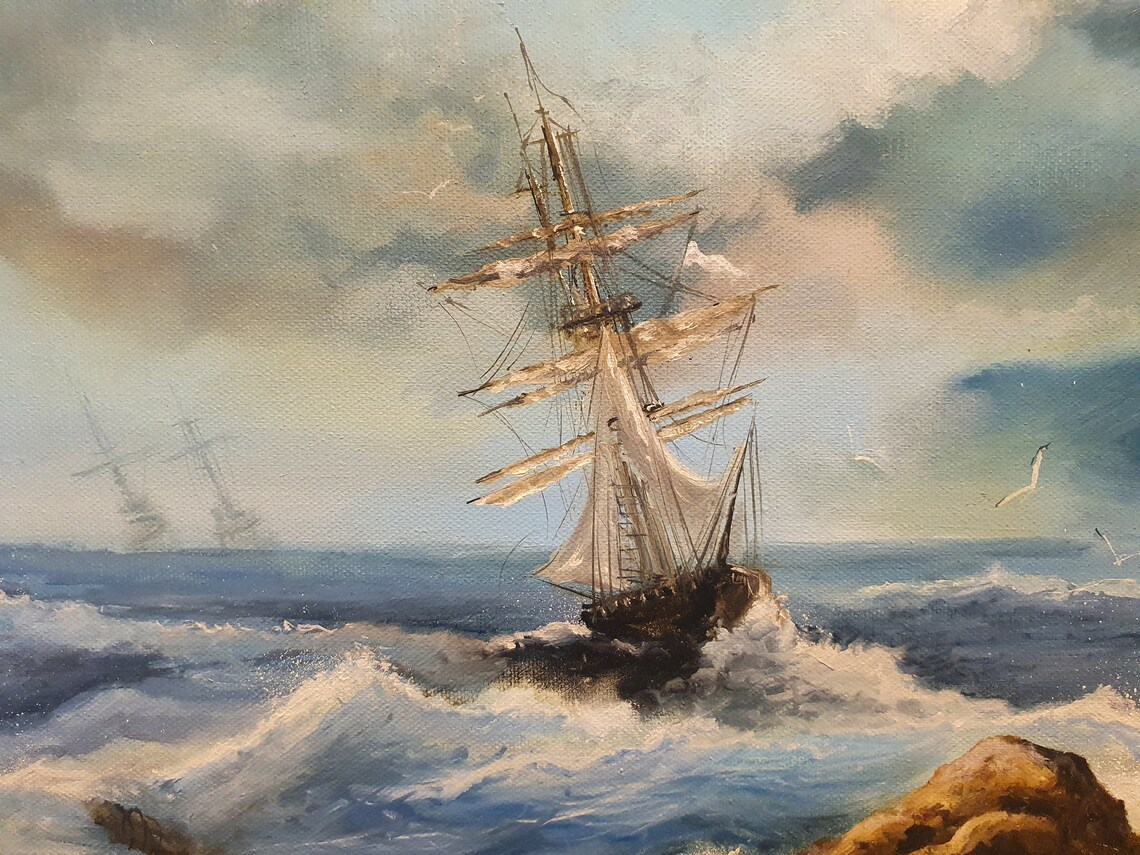 Original Oil Painting Of Large Sailing Ship On Rough Seas Signed By Sailing Ship Oil Painting Great savings & free delivery / collection on many items 19th century english victorian marine oil painting three masted sailing ships located in cirencester, gloucestershire shipping. buy oil paintings of ships and get the best deals at the lowest prices on ebay! check out our sailing ship oil painting vintage selection for the very best in unique. Sailing Ship Oil Painting.