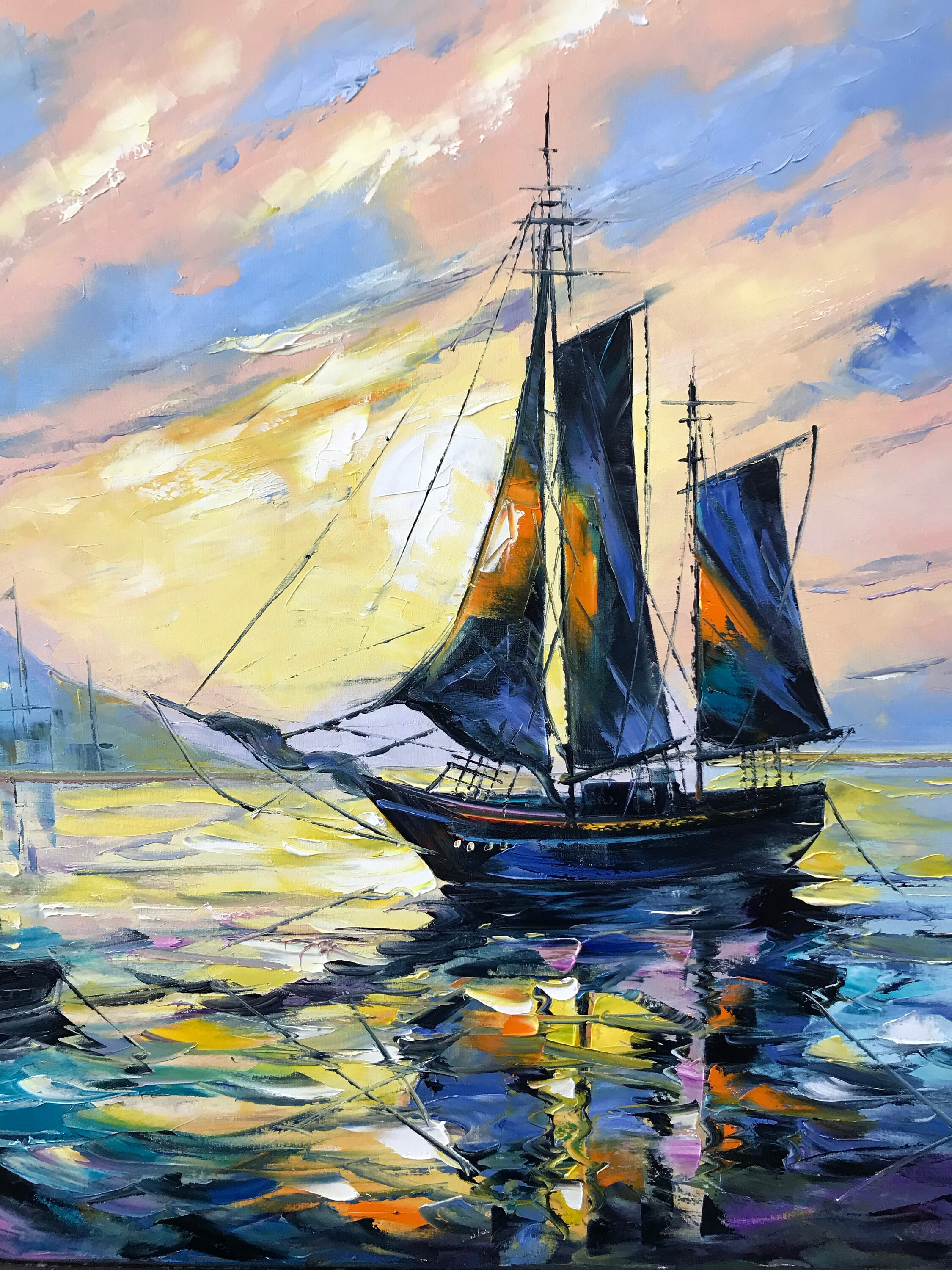 Abstract Ship Oil Painting Original Large Sailing Wall Art Etsy Sailing Ship Oil Painting buy oil paintings of ships and get the best deals at the lowest prices on ebay! shop our sailing ships oil painting selection from top sellers and makers around the world. 19th century english victorian marine oil painting three masted sailing ships located in cirencester, gloucestershire shipping. Buy original art worry free with our 14 day. . Sailing Ship Oil Painting.