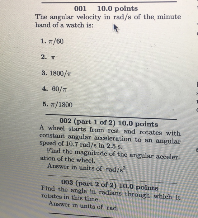 18. Angular velocity of minute hand of a clock is ; (1) 3o rad/s S (2 What Is The Angular Velocity Of The Minute Hand Of A Clock In Radians Per Second what is the angular speed in radians per second (rad/s) of the minute hand on a clock? — there are 2*pi radians in a complete circle, so imagine the minute hand moving around a circular clock. length of the minute hand in a clock is 10 cm. Angular speed (ω) = angular displacement(θ) t otaltimetaken(t) step 2:.. What Is The Angular Velocity Of The Minute Hand Of A Clock In Radians Per Second.