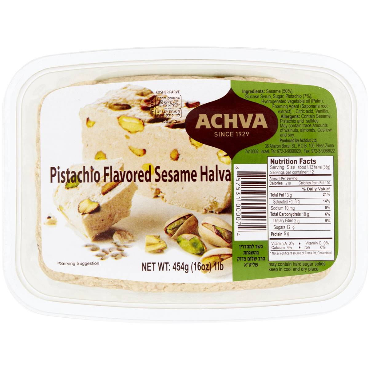 ACHVA HALVA PISTACHIO TUB 454g B Kosher Your UK Kosher Supermarket Achva Pistachio Halva Achva halva is a kosher parve snack that tastes delicious and brings delight to both parents and children. Halva is a traditional mediterranean desert. Smooth sesame paste with vanilla. Quantity decrease quantity for achva gourmet halva with pistachio 200 gr increase quantity for achva gourmet halva with pistachio 200 gr add. Sesame, glucose syrup, sugar, hydrogenated vegetable oil,. Try halva. Achva Pistachio Halva.