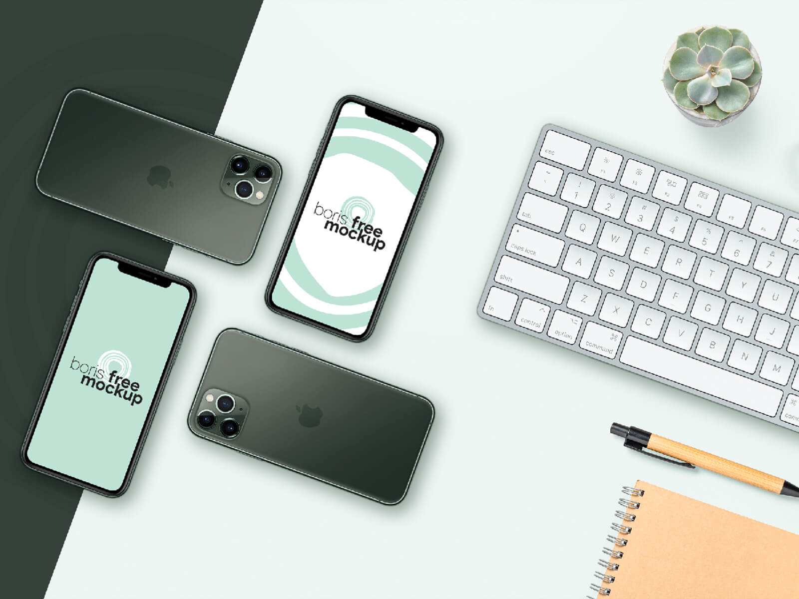 iPhone 11 Pro & Apple Keyboard flatlay mockup UIBundle