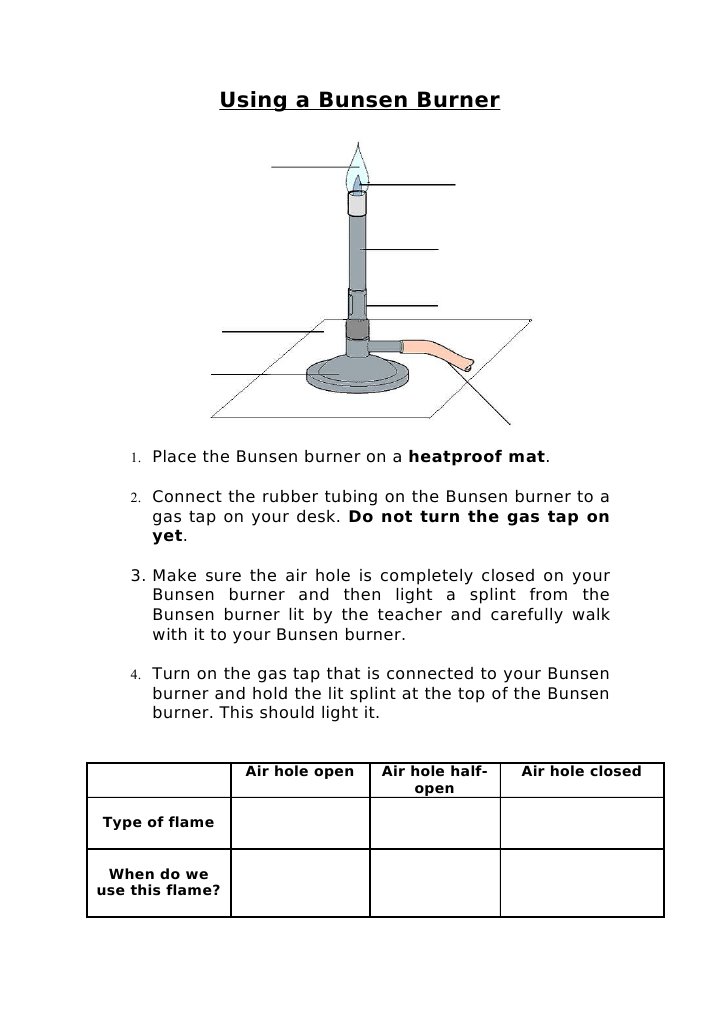 Using a Bunsen Burner Safely Worksheet
