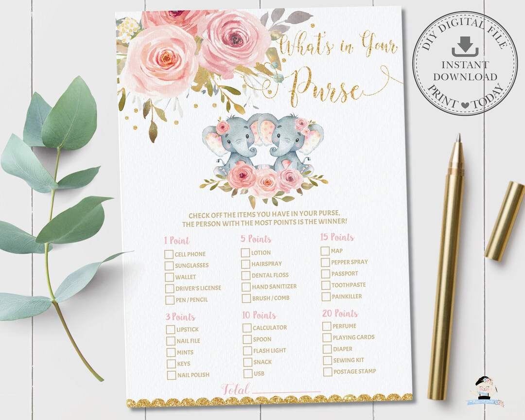 What's in Your Purse Game, INSTANT DOWNLOAD, Blush Pink Floral Elephant What's In Your Purse Quiz The point of the game, is to have all of your guests take out their purses and see how many. how to use the what’s in your purse game. — what's in your purse is a classic and very popular game and this game is perfect for the ladies of all age groups. All you need is a. What's In Your Purse Quiz.