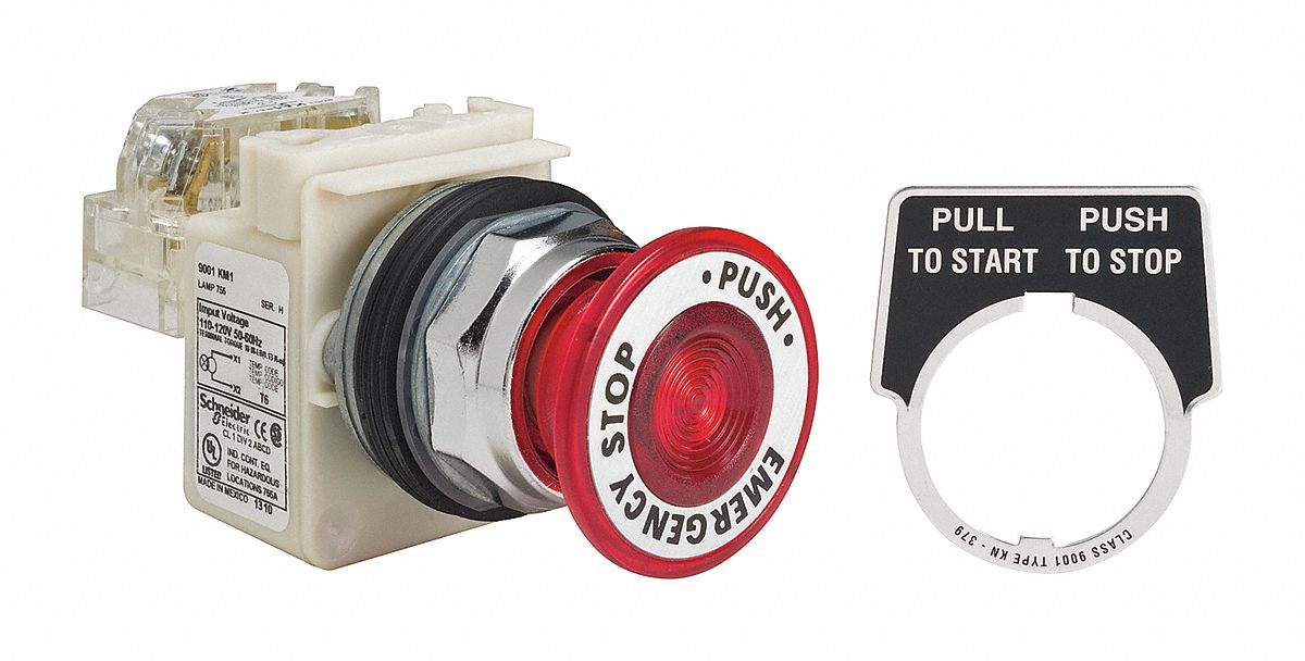 SCHNEIDER ELECTRIC, Illuminated Emergency Stop Push Button, Illuminated Emergency Stop Push