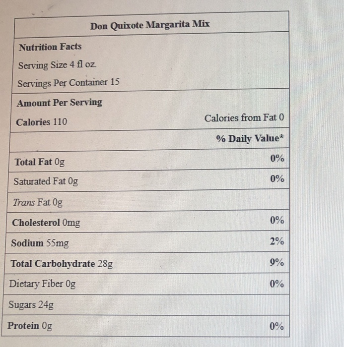 Solved Don Quixote Margarita Mix Nutrition Facts Serving